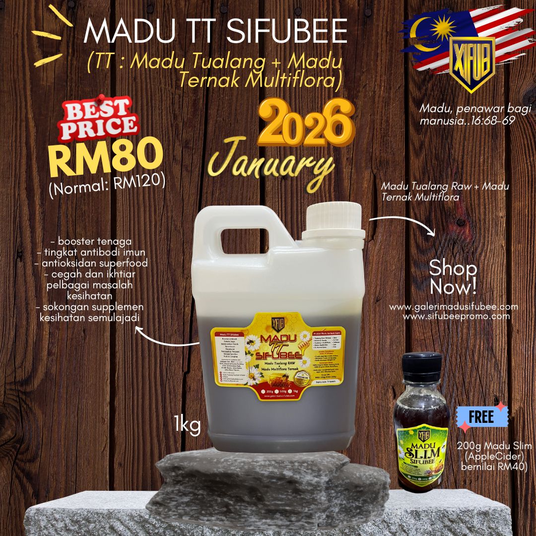 Madu TT adalah gabungan Madu Tualang RAW dan Madu Multiflora seribu bunga (lebah ternak).